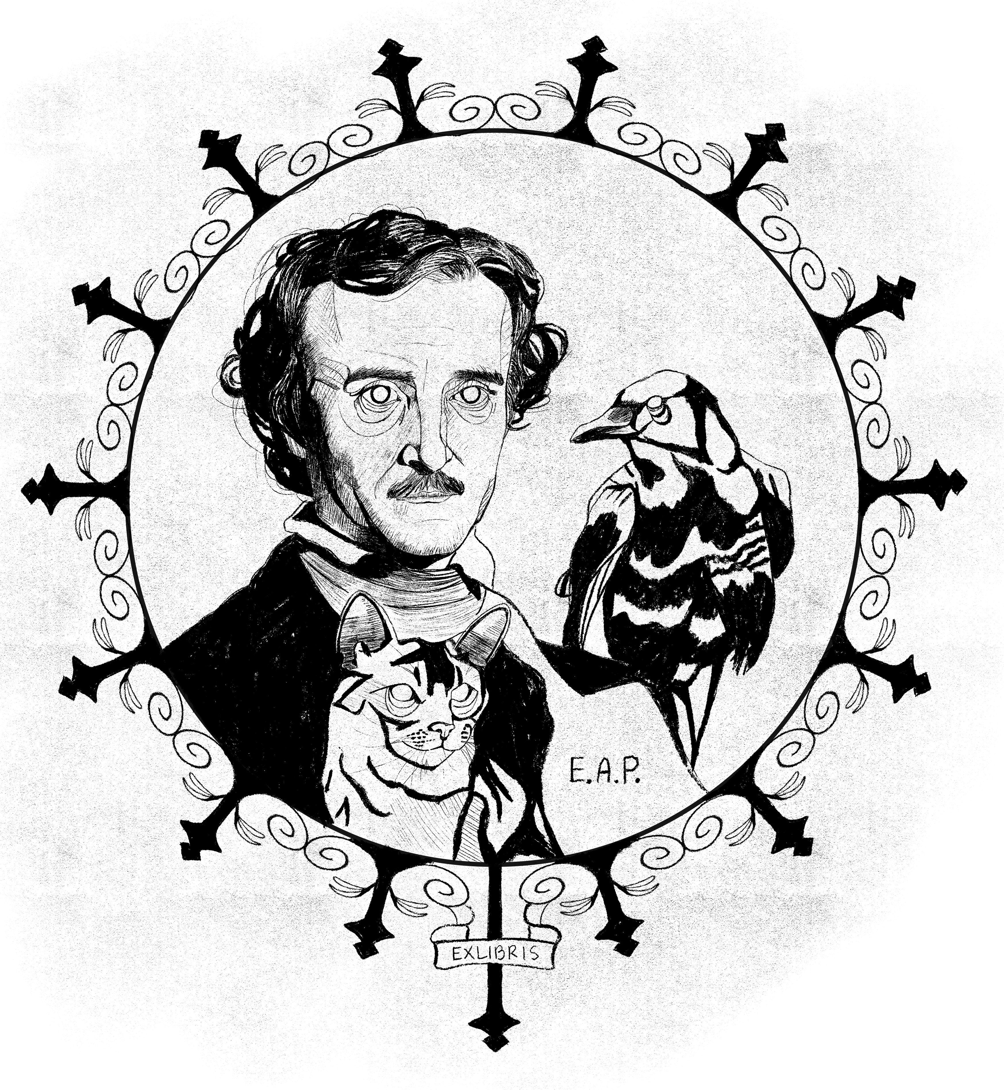 Nieodłącznym źródłem moich inspiracji jest literatura, kino, a także gry. W tym wypadku prace powstały po lekturze Edgara. Portret w formie Exlibrisu wykonany został cyfrowo, a ilustracje przy użyciu cienkopisów i flamastrów.